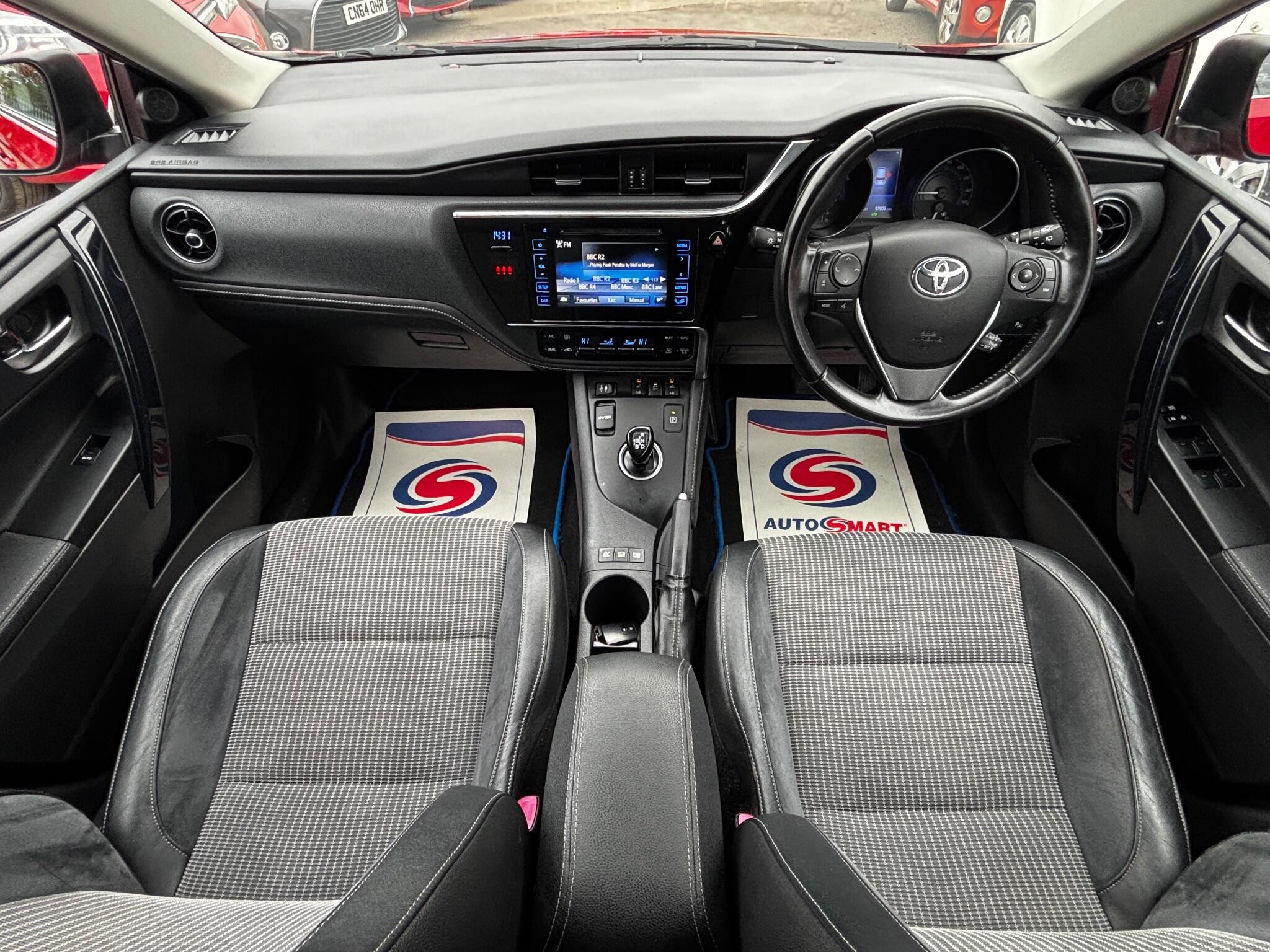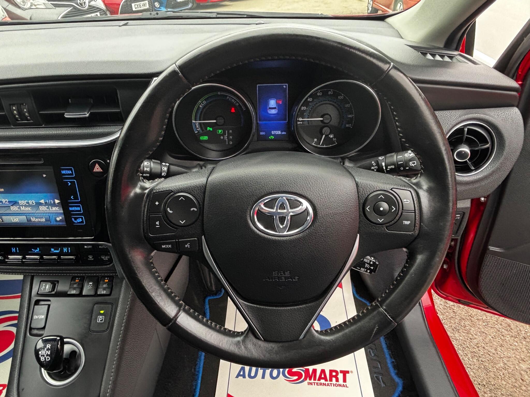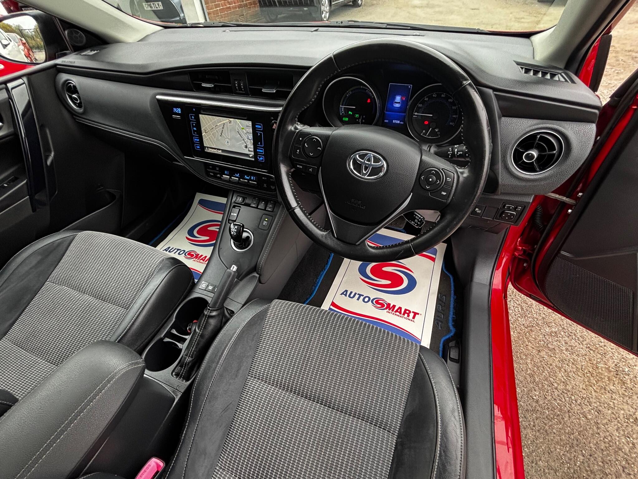 Toyota Auris 1.8 VVT-h Excel CVT Euro 6 (s/s) 5 Door Automatic Hybrid, Only 3 owners from new, Only 97,000 miles with Service history, Finished in metallic red with part leather seat trim, Fitted with Satellite navigation, Rear parking camera, Bluetooth phone connection with music streaming function, Front and rear parking sensors, Cruise control, Heated front seats, Air conditioning, Alloy wheels, Electric front and rear windows, Electric door mirrors, Power fold door mirrors, Remote central locking, Power steering, Tinted glass, Automatic gearbox, Heated rear screen, Rear wash wipe, 2 Keys £20 Tax and excellent fuel economy, Many other Auris in stock, Please check our website!!!