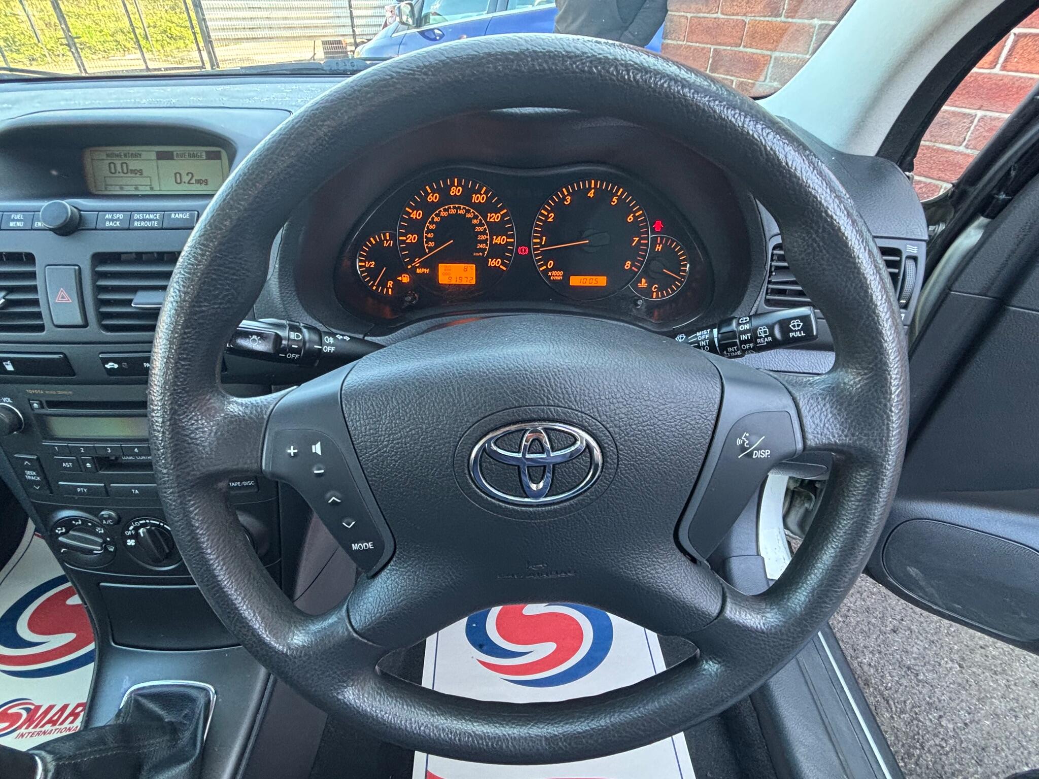 Toyota Avensis 1.8 VVT-i T2 5 Door, Only ONE owner from new, Only 91,000 miles with an amazing 21 services carried out on this Avensis, Finished in mettalic silver with cloth interior seat trim, Fitted with Air condirioning, Electric front windows, Electric door mirrors, CD Radio stereo system, 5 Speed gearbox, Heated rear screen, Rear wash wipe, 3 KEYS, Couple of marks around the bodywork as to be expected at this age and price, Roof lining sagging, Many other cars in stock, Please check our website!!!