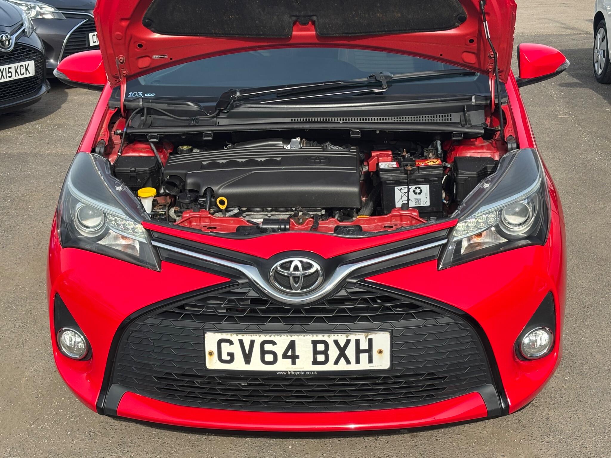 Toyota Yaris 1.33 Dual VVT-i Sport Euro 5 5 Door, Only 2 owners from new, Only 103,000 miles with a full service history, 12 Services carried out on this Yaris, Finished in red with red and black interior seat trim, Fitted with Rear parking camera, Panoramic glass roof with sun blind, Bluetooth phone connection with music streaming function, Air conditioning, Alloy wheels, Electric front windows, Electric door mirrors, Remote central locking, Power steering, 6 Speed gearbox, Heated rear screen, Rear wash wipe, 2 KEYS, Only £35 road tax and low insurance rating, Many other Yaris in stock, Please check our website!!!
