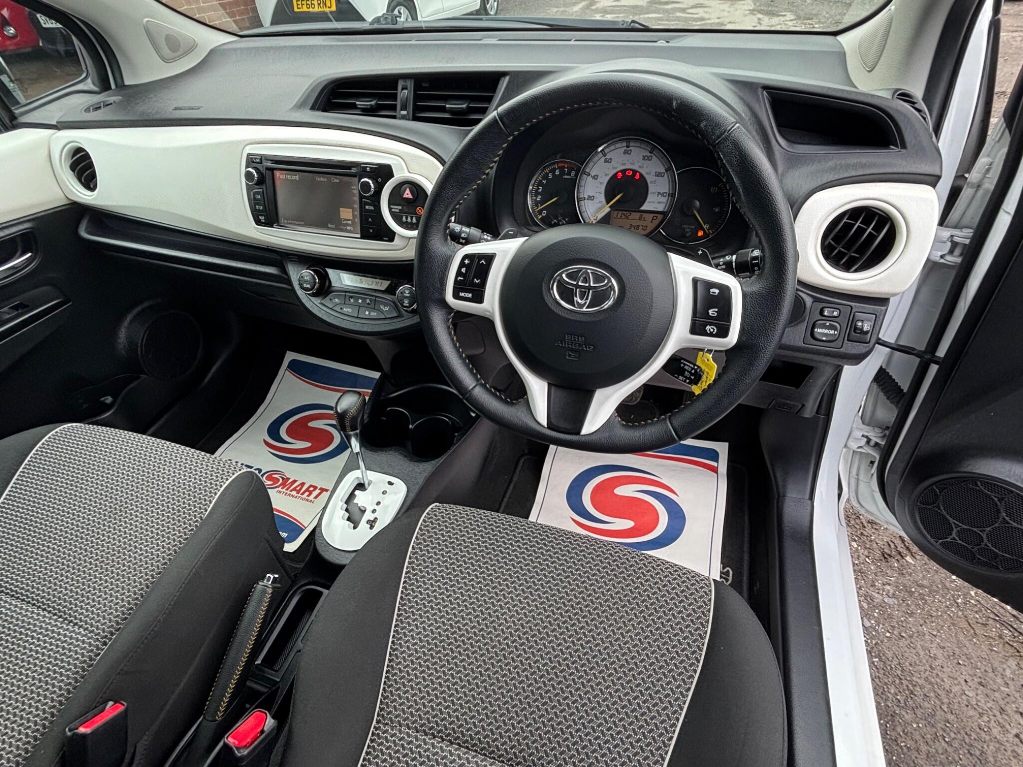 Toyota Yaris 1.33 Dual VVT-i Trend Multidrive S Euro 5 Automatic 5 Door, Only ONE owner from new, Only 34,000 miles with a comprehensive service record, 7 Services carried out on this Yaris, Finished in white with cloth interior, Fitted with Rear parking camera, Bluetooth phone connection with music streaming function, Cruise control, Air conditioning, Alloy wheels, Electric front and rear windows, Electric door mirrors, Remote central locking, Power steering, 6 Speed gearbox, Tinted glass, Heated rear screen, Rear wash wipe, 2 KEYS, Many other Yaris in stock, Please check our website!!!
